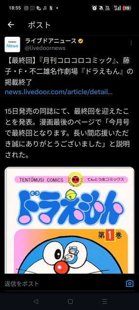 【最終回】『月刊コロコロコミック』、藤子・F・不二雄名作劇場『ドラえもん』の掲載終了https://t.co/NBaUDgXngQ