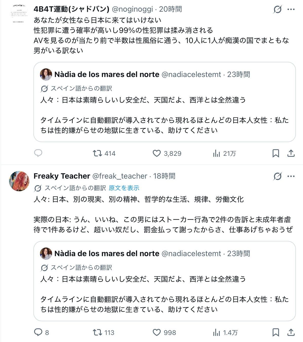 外国人女性が日本で受けた性被害受けた報告も大量にある模様