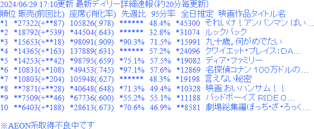 【悲報】ルックバック、アンパンマンの映画にまさかの敗北……