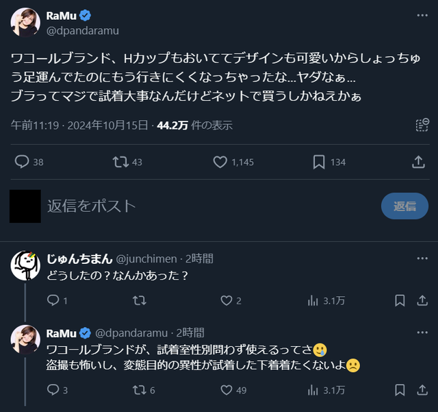 ワコール男性客にも柔軟に対応するてゆってるけど女への嫌がらせや性欲目的で女が今後試着するであろう下着を試着してチ●コ擦り付けたりする男が絶対に現れるし、試着室でスタッフさんの安全どうやって守るんだろ????本当に性同一性障害なのかそれを利用した性犯罪者なのかこっちは見分ける方法ないゆ pic.twitter.com/MkOsidDueK
