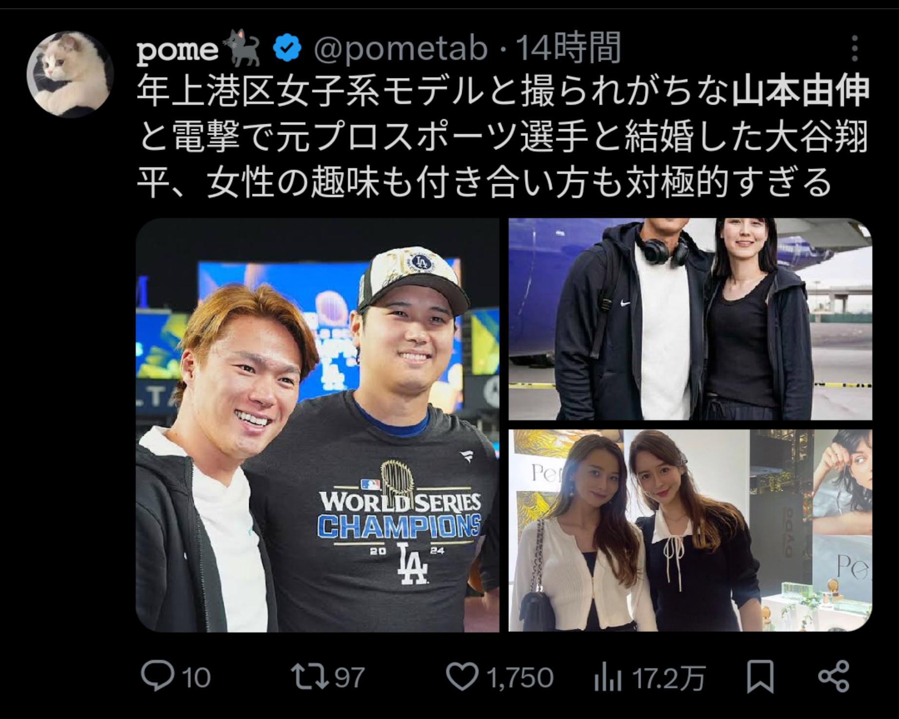 山本由伸さん、彼女が特定されことごとく叩かれるwww