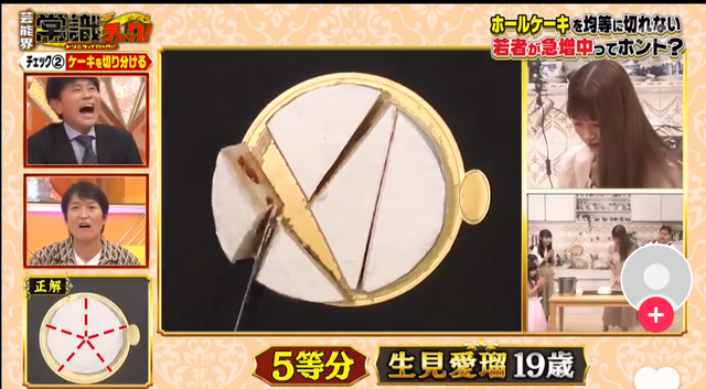【悲報】めるる(19)、ケーキを5等分出来ずガチで引かれてしまうwww