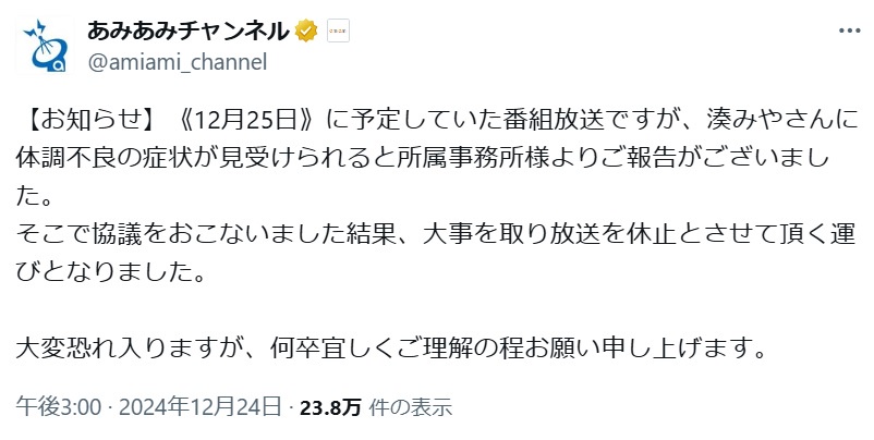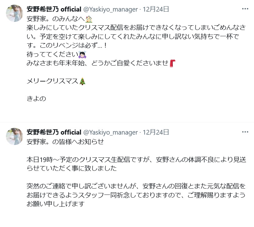 【悲報】人気声優さん、クリスマスに続々と体調不良になってしまう…