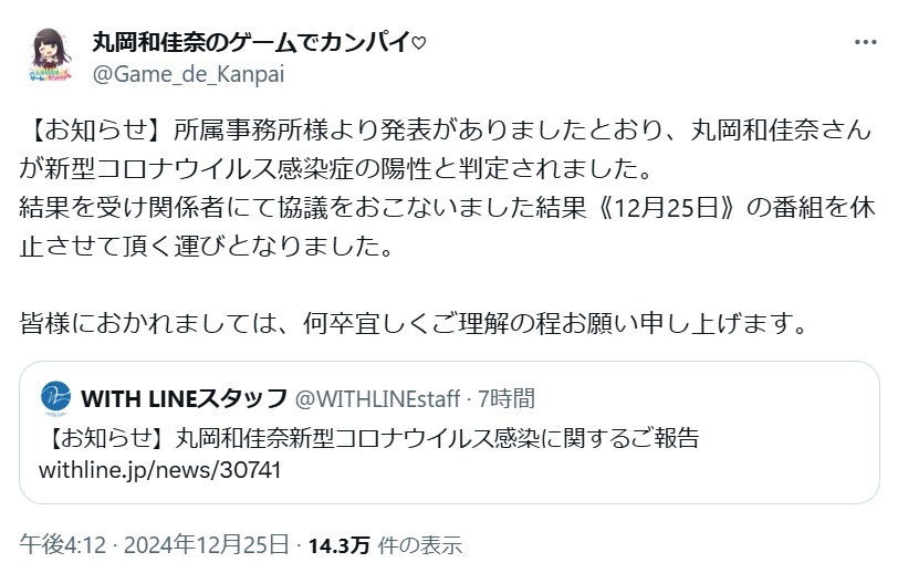 - 【悲報】人気声優さん、クリスマスに続々と体調不良になってしまう…