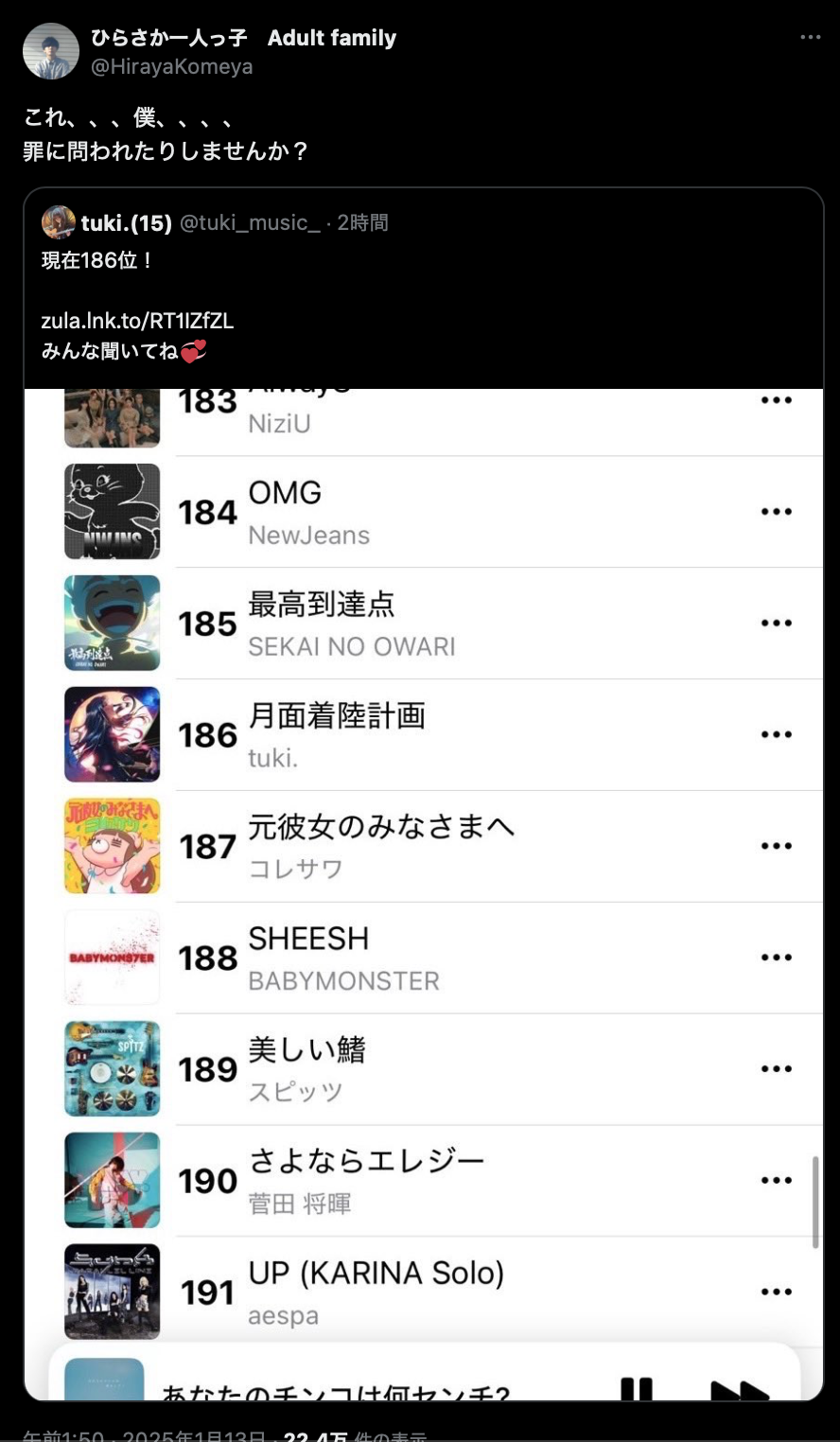 みんな聞いてね💞 pic.twitter.com/ApM3L7axl3— tuki.(15) (@tuki_music_) January 12, 2025