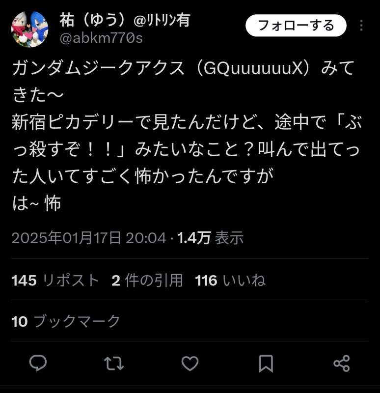 【悲報】ガンダムおじさん、ジークアクス鑑賞中に発狂絶叫してダイナミック退場