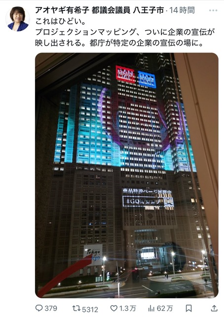【悲報】都庁の『プロジェクションマッピング』、広告映像を流した結果wwwwww
