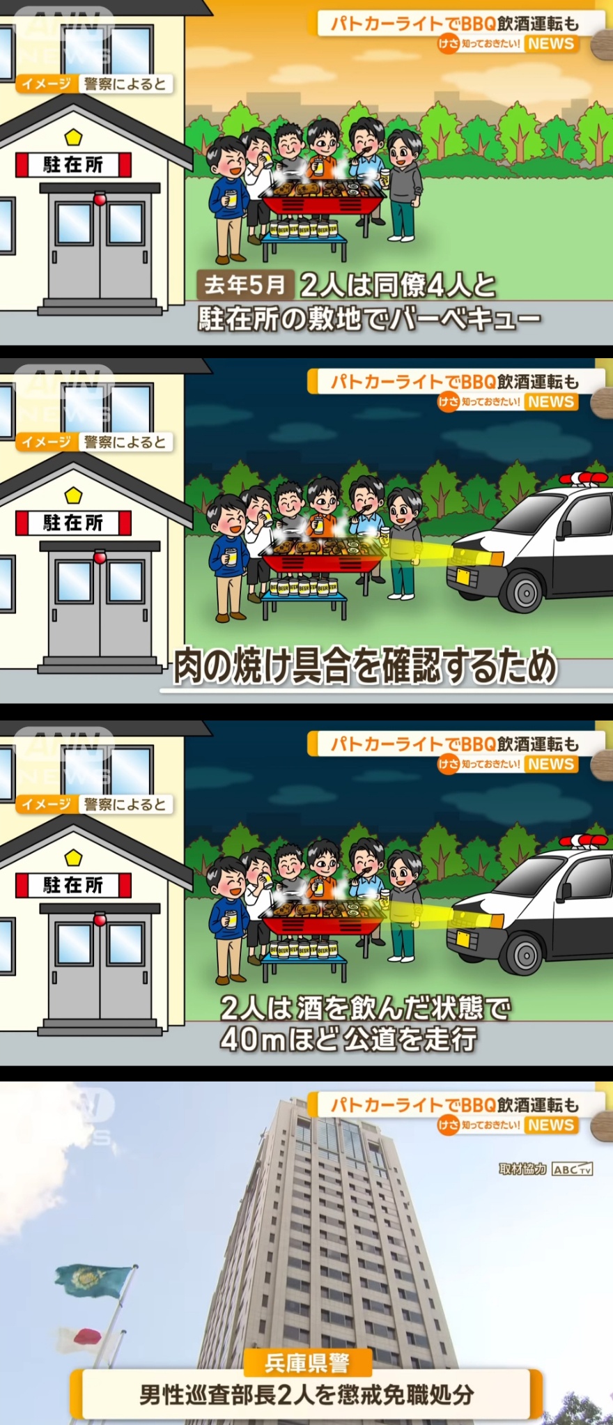 パトカーのライトでバーベキュー、飲酒運転も 兵庫県警巡査部長2人懲戒免職(テレビ朝日系(ANN)) – Yahoo!ニュース