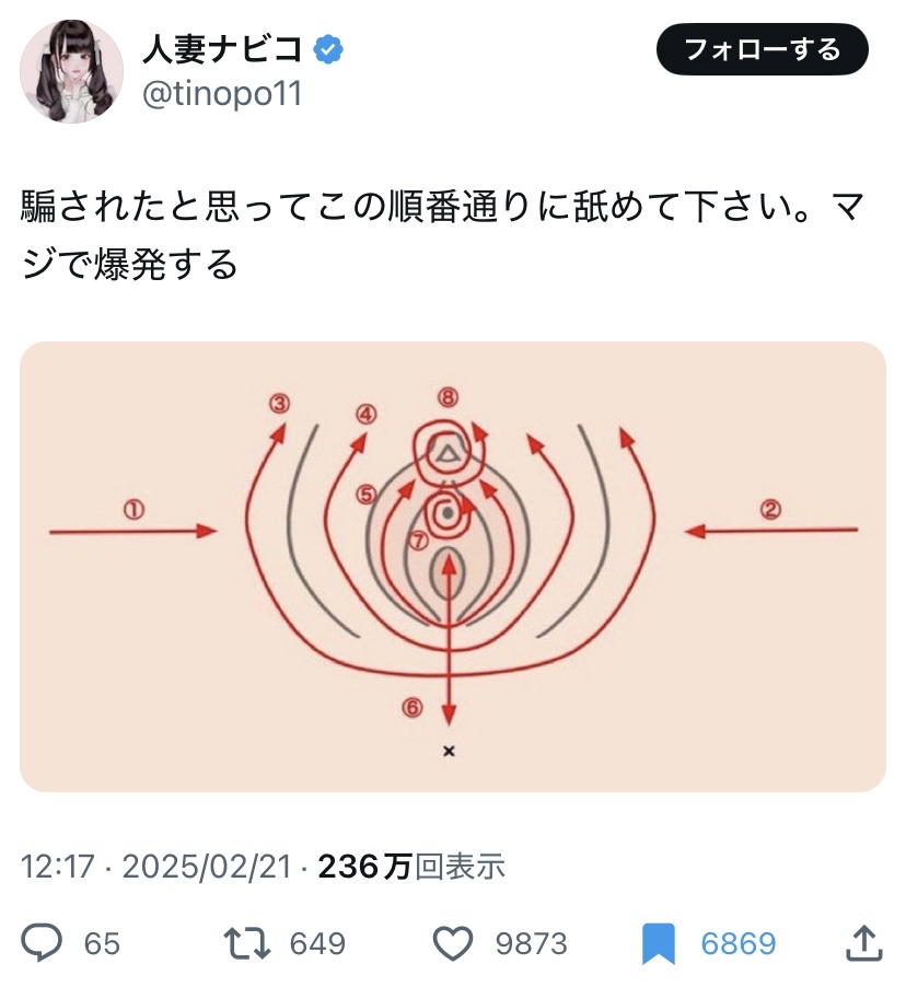 人妻「最強のク●ニはこれ。この順番通りに舐めれば女は爆発します」→1万いいね