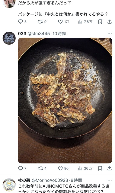 フライパンに傷があると説明書どおりに作ってもそうなるぞ