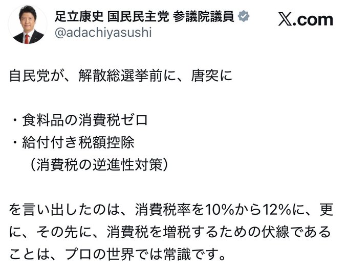 国民民主党議員と支持者達「自民党が消費税12%にする」と切り抜き動画を元に増税デマを流して大炎上爆発中 2026年2月2日 最終更新日時 : 2026年2月2日 ココナラwordpress 広告エリア 【悲報】2025年に引退したAV女優、ガチで豪華すぎて絶望www 女友達(33)「もう結婚無理かなー」ワイ(29)「俺とするか?w」女友達「え?w」→結果・・・・・・⇒ 後続車が車線変更して追い抜こうとする時にめちゃくちゃ速くなるやつwwwwwwwwwwwwwwwwww 【悲報】中道改革連合がボロ負けした理由wwww 【朗報】カジサックの娘さん、順調に育つwwwwwwww 2/6より「『PARCO GAME CENTER(パルコゲームセンター)』」が渋谷でスタート !『ROMEO IS A DEAD MAN』発売記念イベントは2/7、先行試遊や来場者参加企画、グッズ、カレーも 【画像】篠原ともえさん(45)、エッッッッッッッッッッッッ! 【悲報】米山隆一さん、スマホが気になって仕方ない模様wwwwww 【画像】ミニスカ女さん、自販機で飲み物を買うもうっかりお尻を突き上げる→!!!! 【悲報】お前ら、徴兵対策は何するの? 国民民主党議員と支持者達「自民党が消費税12%にする」と切り抜き動画を元に増税デマを流して大炎上爆発中 続きを読む 続きを見る 広告エリア 【悲報】2025年に引退したAV女優、ガチで豪華すぎて絶望www 女友達(33)「もう結婚無理かなー」ワイ(29)「俺とするか?w」女友達「え?w」→結果・・・・・・⇒ 後続車が車線変更して追い抜こうとする時にめちゃくちゃ速くなるやつwwwwwwwwwwwwwwwwww 【悲報】中道改革連合がボロ負けした理由wwww 【朗報】カジサックの娘さん、順調に育つwwwwwwww 2/6より「『PARCO GAME CENTER(パルコゲームセンター)』」が渋谷でスタート !『ROMEO IS A DEAD MAN』発売記念イベントは2/7、先行試遊や来場者参加企画、グッズ、カレーも 【画像】篠原ともえさん(45)、エッッッッッッッッッッッッ! 【悲報】米山隆一さん、スマホが気になって仕方ない模様wwwwww 関連記事 【衝撃】マッマ「腰痛いなら”針”打ってもらいな」 ワイ「鍼治療とか効かんやろ…」⇒! 【悲報】東京都民、1.1万円配布に殺到しすぎて大混乱www 【悲報】銀取引で1900万円溶かした猛者、発見されるwww 【画像あり】東京大学の教授さんがどハマりしてしまったソープ女がこちら///