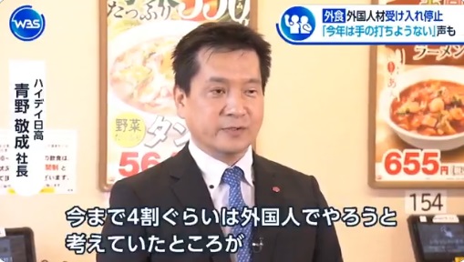 日高屋社長「外国人を雇いたいのに制限がかかったので日本人を雇うしかない」←炎上中 高市政権による外国人材受け入れ停止にコメント