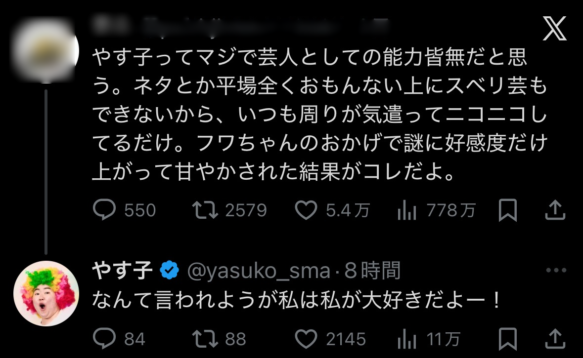 【唖然】やす子さん、匿名に説教をしてしまう→(※画像あり)