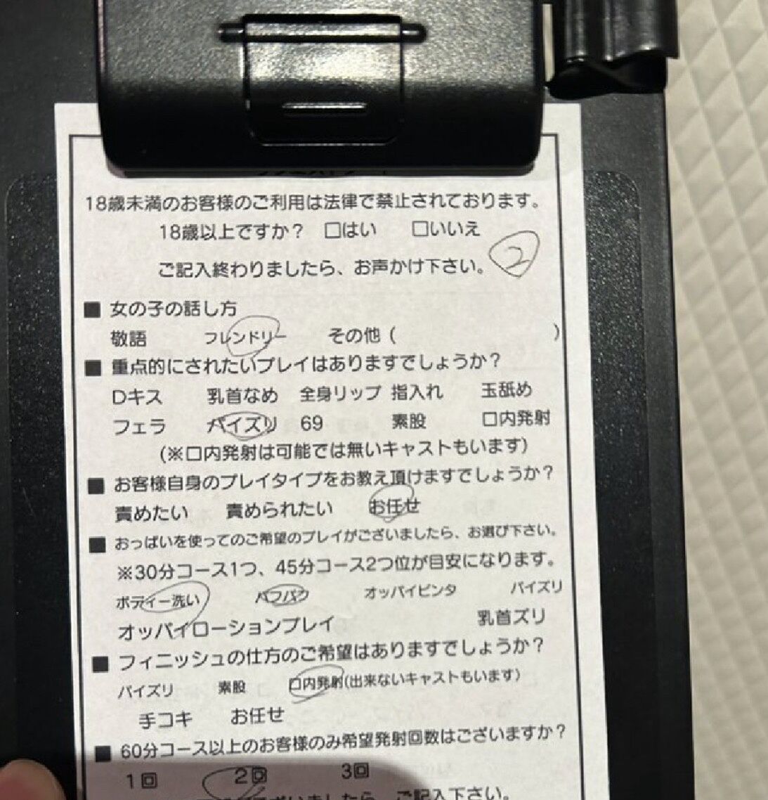 【画像】風俗ってこんなの書かされるってマジ⇒!? 2026年1月12日 最終更新日時 : 2026年1月12日 ココナラwordpress 広告エリア 【愕然】幹部(月収180万)「赤字だぞ!死ぬ気で働け」部下(月収18万)「申し訳ございません!!」→幹部切ったらwwwwwwwww 【画像】歯医者にガチの「合法口リ(139cm)」みたいな衛生士がいるんだがwwww 【悲報】ホリエモン、ラーメン屋にブチギレwww 【悲報】バカ「筋トレはいいぞぉー!」ワイ「格闘技でよくね?!」 後輩「LINEですいません…背中に違和感あって休みます。」ワイ「そうか (背中に違和感てwwwwwww)」→ 快楽墜ち女「んほおおおお!!!オ●ンポ気持ちいいのおおお!!!」←これはダメ、本当の快楽墜ちは→ 【愕然】母親が再婚して義姉ができた結果→! 【悲報】中国の試験『科挙』、ガチでう●こすぎるwwwwwwww 女子高生2人がYouTubeで「終わりにしよっか」飛び降り生配信⇒! 【速報】最近のコンカフェ、過激化して大変なことになるwwwwwwwwwwwwww 【画像】風俗ってこんなの書かされるってマジ⇒!? 1: 以下、5ちゃんねるからVIPがお送りします 2026/01/10(土) 08:10:43.249 ID:f1rQ/9X/0 人として恥ずかしすぎるだろ… 続きを読む 続きを見る(外部サイト) 広告エリア 【愕然】幹部(月収180万)「赤字だぞ!死ぬ気で働け」部下(月収18万)「申し訳ございません!!」→幹部切ったらwwwwwwwww 【画像】歯医者にガチの「合法口リ(139cm)」みたいな衛生士がいるんだがwwww 【悲報】ホリエモン、ラーメン屋にブチギレwww 【悲報】バカ「筋トレはいいぞぉー!」ワイ「格闘技でよくね?!」 後輩「LINEですいません…背中に違和感あって休みます。」ワイ「そうか (背中に違和感てwwwwwww)」→ 快楽墜ち女「んほおおおお!!!オ●ンポ気持ちいいのおおお!!!」←これはダメ、本当の快楽墜ちは→ 【愕然】母親が再婚して義姉ができた結果→! 【悲報】中国の試験『科挙』、ガチでう●こすぎるwwwwwwww 関連記事 嫁「絶対にこの子を産む!ダウン症でも私を選んでくれた天使なんだよ!?」ワイ「黙れえ!」ボカッ!!嫁「うっ…!」 【画像】女さん、極太の『オトナの玩具』を隠そうとしてバレるwwwwwwwwwwwww 【画像】女さん、極太の『オトナの玩具』を隠そうとしてバレるwwwwwwwwwwwww 【画像】女さん、極太の『オトナの玩具』を隠そうとしてバレるwwwwwwwwwwwww