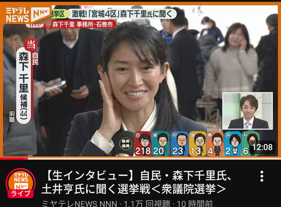 【画像あり】森下千里議員、かわいすぎる。これもうルッキズムだろ!