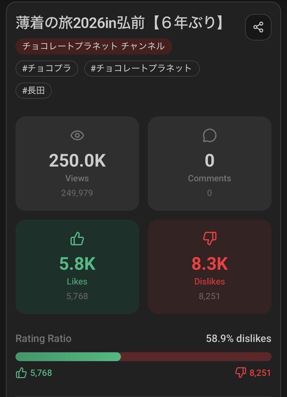 【画像あり】コメント欄を封鎖したチョコレートプラネットさん、最新動画が爆伸びwwwww 2026年2月28日 最終更新日時 : 2026年2月28日 ココナラwordpress 広告エリア 【画像あり】ラーメン屋、子連れ客にブチギレwwwww 【速報】イスラエルがイランに「先制攻撃」さらに米軍もイランを攻撃開始 【画像】大谷翔平、中田翔を見てこの表情wwwww 2月に配信された「PSVR2対応タイトル」新作3タイトルがPlayStation.blogにて公開──『Aces of Thunder』『City of Hunger』 ほか気になるPSVR2タイトルが見つかる…かも 【画像あり】アメリカのお医者さんごっこ、何かがおかしいwwwwwww 【朗報】人気のないベンチで座ったまま亡くなった男性、10年後に座ったまま見つかる 【画像あり】アリサ・リウちゃん、淫紋タトゥーが判明しアメリカで炎上wwwwwww 欧州で摘発される中国人スパイ組織 予想以上に本格的な組織になっていると話題に 【謎】日本の40〜50代の「スマホ左手持ち」率、異常すぎるwwwww 【画像あり】コメント欄を封鎖したチョコレートプラネットさん、最新動画が爆伸びwwwww 【画像あり】コメント欄を封鎖したチョコレートプラネットさん、最新動画が爆伸びwwwww 1: それでも動く名無し 2026/02/26(木) 23:27:16.33 ID:aDkBCkAN0 ガチですごい 2: それでも動く名無し 2026/02/26(木) 23:27:23.91 ID:aDkBCkAN0 アンチの負けや 続きを読む 続きを見る(外部サイト) 広告エリア 【画像あり】ラーメン屋、子連れ客にブチギレwwwww 【速報】イスラエルがイランに「先制攻撃」さらに米軍もイランを攻撃開始 【画像】大谷翔平、中田翔を見てこの表情wwwww 2月に配信された「PSVR2対応タイトル」新作3タイトルがPlayStation.blogにて公開──『Aces of Thunder』『City of Hunger』 ほか気になるPSVR2タイトルが見つかる…かも 【画像あり】アメリカのお医者さんごっこ、何かがおかしいwwwwwww 【朗報】人気のないベンチで座ったまま亡くなった男性、10年後に座ったまま見つかる 【画像あり】アリサ・リウちゃん、淫紋タトゥーが判明しアメリカで炎上wwwwwww 欧州で摘発される中国人スパイ組織 予想以上に本格的な組織になっていると話題に 関連記事 高地での都市建設シミュレーション 『レイサラ:サミットキングダム | Laysara: Summit Kingdom』本日2/28リリース!悪天候や雪崩など、山で遭遇する危険に対処し王国再建を目指す 【謎】日本の40〜50代の「スマホ左手持ち」率、異常すぎるwwwww ヘンリーの始まりの物語『Kingdom Come: Deliverance』PS5対応アップデートが公開、『Ⅱ』は500万本突破&PSStoreではセール中 2026年2月22日(日)付け 今週発売予定のPS5・PS4ゲームソフトをピックアップ!