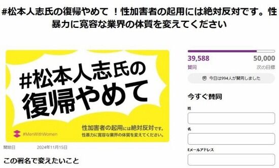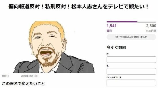 【画像】松本人志さん、復帰反対派が4万人なのに対し復帰賛成派が1500人しかいない・・・
