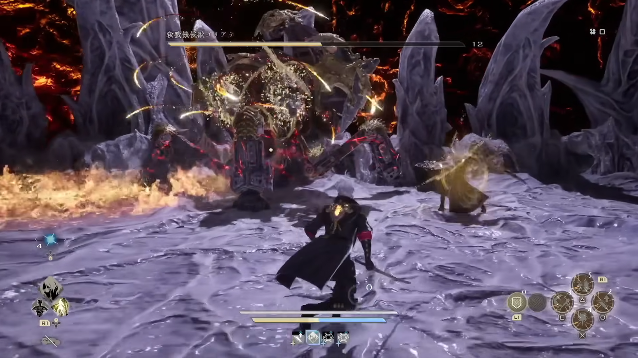 広範囲を薙ぎ払う太刀による一閃が脅威となる。#コードヴェイン2
